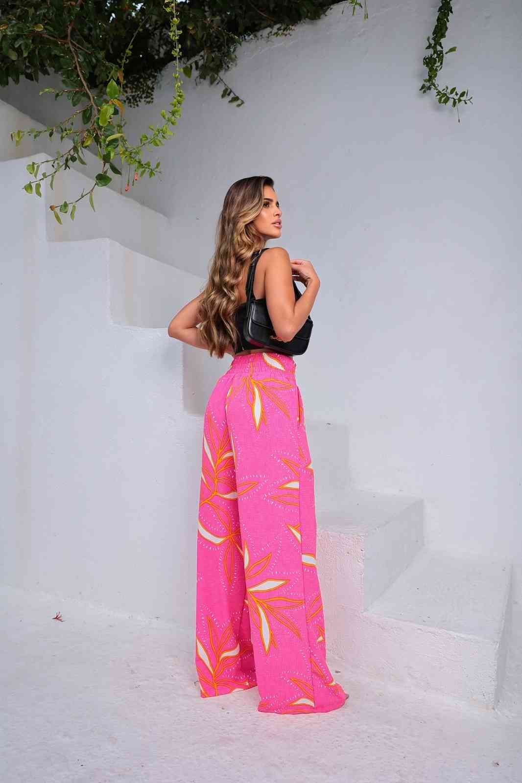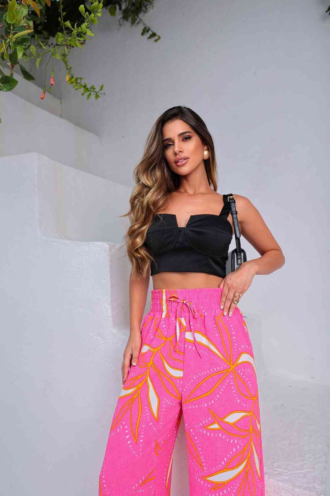 Pantalona estampada com estampa de abacaxi, para um visual divertido e retrô.